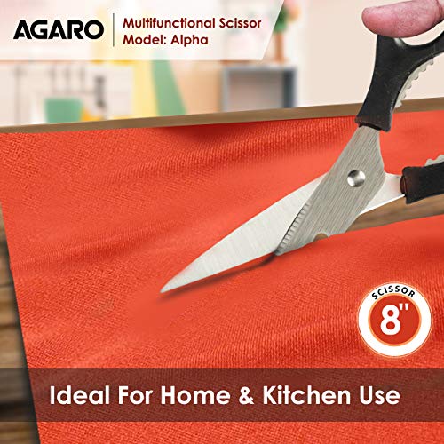 AGARO Alpha Home & Kitchen Multi Function Scissor – 8 inch – 2.3 mm, Black & Silver, Medium