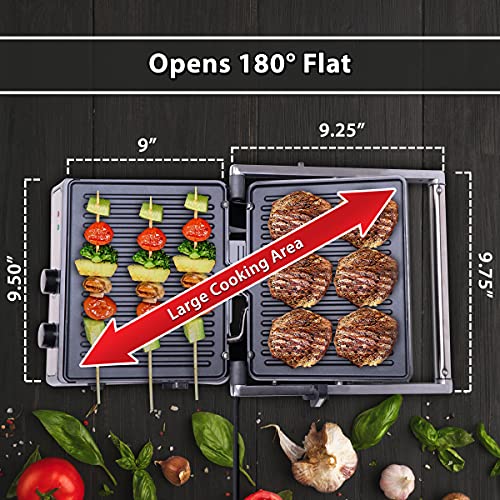 AGARO Grand 2000 Watts Super Jumbo Sandwich Maker with Non-Stick Grill Plates, 180° Flat Openable Plates, Temperature and Timer Knob, Big Size