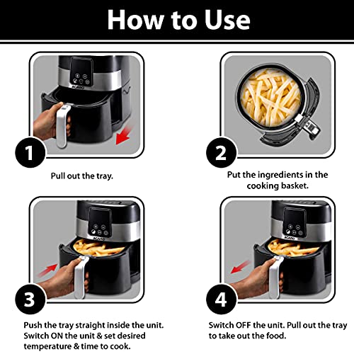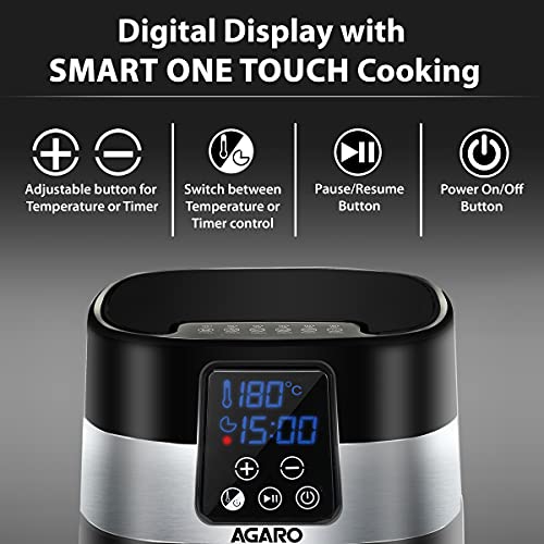 AGARO Grand Digital Air Fryer, 1300Watts with 4 Ltr Basket, Fry, Bake, Grill, Roast,Bake and Steam with 6 Pre-set Menu, Less Oil Usage, Led Control Panel, Black (33556)