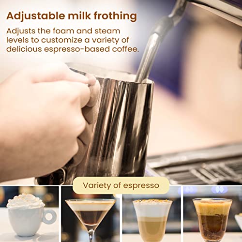 Allows you to adjust the foam and steam levels to customize a variety of delicious espresso-based coffee. 360°rotating stainless steel frothing wand is more convenient to use