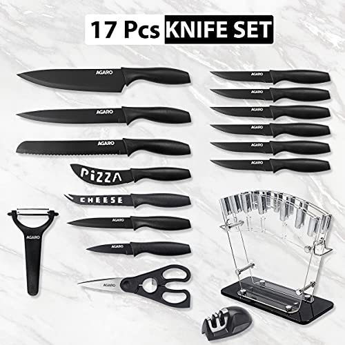 9 Piece Knife Set includes Chef Knife, Bread Knife, Slicing Knife, Utility Knife, Steak Knife, Santoku Knife, Paring Knife, Sharpener, Wooden Block