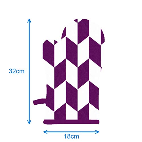 Airwill © Cotton Designer Pattern Heat Resistant Kitchen Linen Set (1 Apron, 1 Oven Mitt, 1 Pot Holder) (Purple, White)
