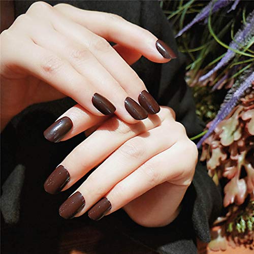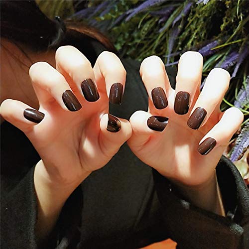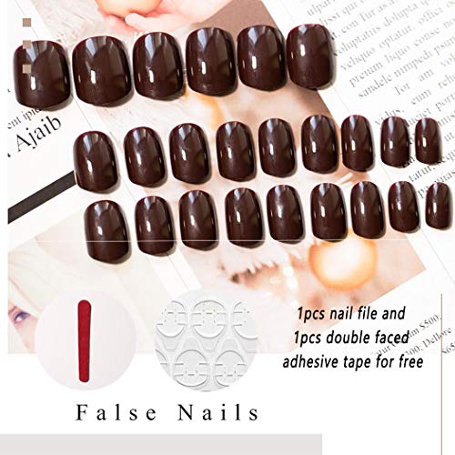 Ajacry Fashion Short Square False Nails Coffee Press on Nail Tip Glossy False Nails Full Cover Nails Art Decoration Artificial Nail Accessories For Women and Girls 24pcs