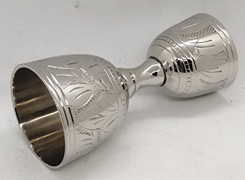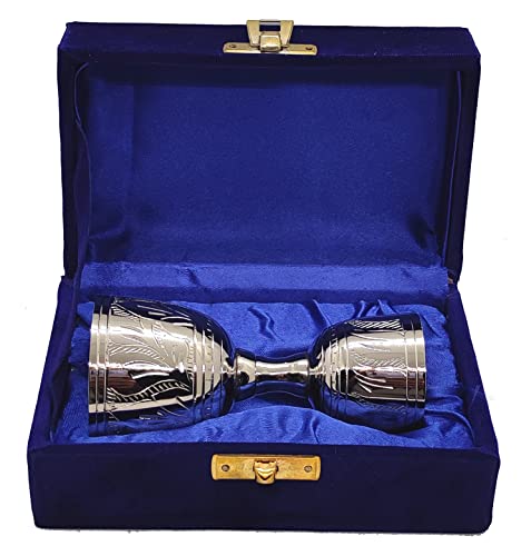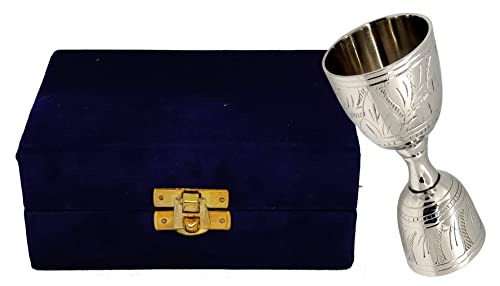 Akanksha Arts EPNS, Brass Engraved Peg Measure Cup with Decorative Box, 30 ml / 60 ml, Silver Finish