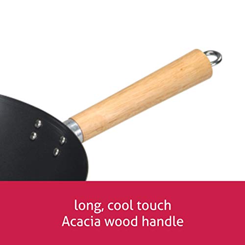 * High grade carbon steel woks * heats and cools quickly & evenly * with extra deep high flared carved skirt * ideal material for the deep frying and chinese style of cooking * stick resistance pfoa free xylon coating * long handle with cool touch elegant wood * it is made of iron and hence is prone to rust which is not a defect