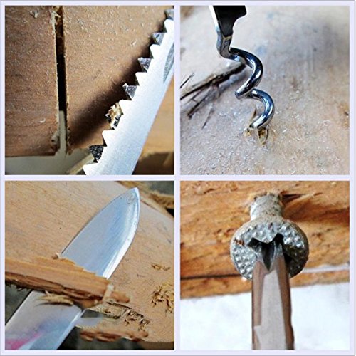 Multiple uses and functions – includes can opener, leather punch, needle, toothpick, nail file, tweezers, key ring, bottle opener, knife, wine opener, saw, screwdriver, hook remover and scissors