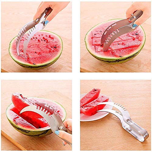 Amaxone Stainless Steel Watermelon Cantaloupe Slicer Stainless Steel Knife Corer Fruit Vegetable Tools Kitchen Gadgets Melon Slicer Cutter Melon Fruit Dig Corer