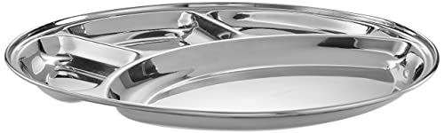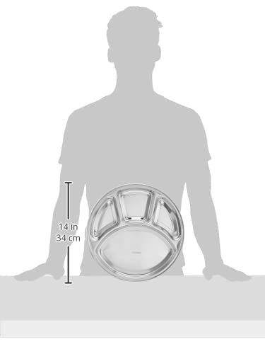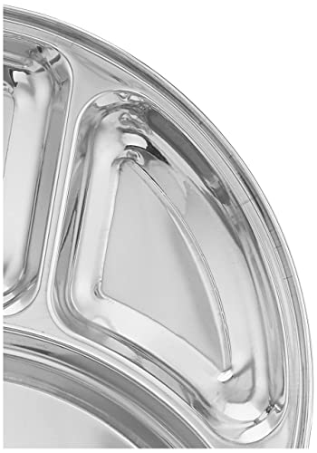 Introducing the Amazon Brand – Solimo 4-in-1 Round Bhojan Thali Plate. This plate has 4 deep compartments which make it perfect for lunch and dinner. Made with stainless steel, the product is rust-proof, long-lasting, and has a glossy finish. Owing to the compartments, the plate promotes a balanced diet. It is the ideal choice for camping, picnics, and schools, as a serving dish for sweets, chocolates, or gifts during Diwali, and for outdoor or indoor use. It reduces the need for more plates, allowing you to reduce clutter in the kitchen. It is super easy to clean as it is dishwasher-safe.
