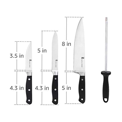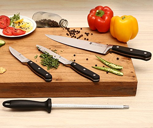 Be the first to review “Amazon Brand – Solimo Premium High-Carbon Stainless Steel Kitchen Knife Set, 4-Pieces (with Sharpener), Silver”