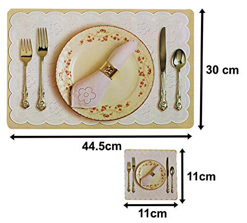 Package Contents:- PVC Dining Table Placemat and Tea Coaster Set, Set of 6, Design: Plate, Colour: Ivory