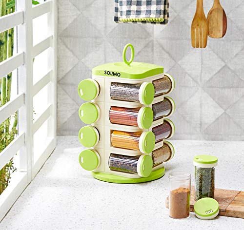 Amazon Brand – Solimo Revolving Plastic Spice Rack set (16 pieces,Silver)