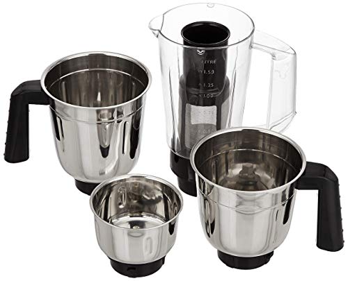 Comes with 3 High Grade SS 202 Stainless steel jars and a juicer jar- Liquidizing jar (1.5 L), Wet grinding jar (1.5 L), Dry Grinding Jar (1L) and Chutney jar (0.4 L) Jars