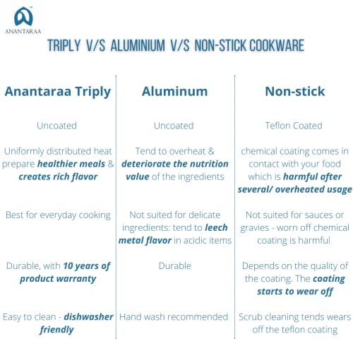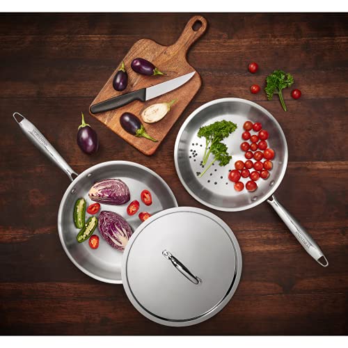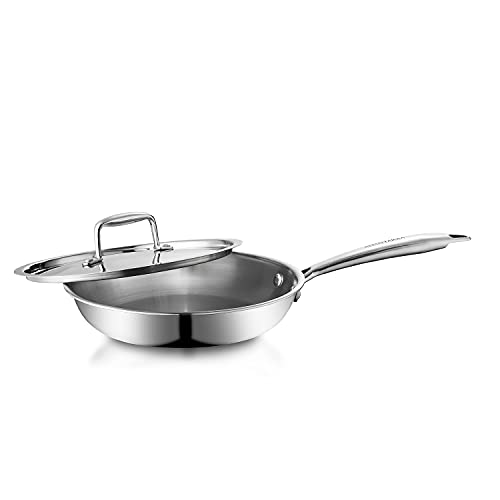 EVEN HEAT DISTRIBUTION: 100% food-grade long-lasting Tri-Ply stainless steel. This encapsulated tri-ply base heats quickly and allows heat to be evenly distributed providing a smooth and flawless cooking experience. Thus, results in 20 % less cooking time and minimum burning of food