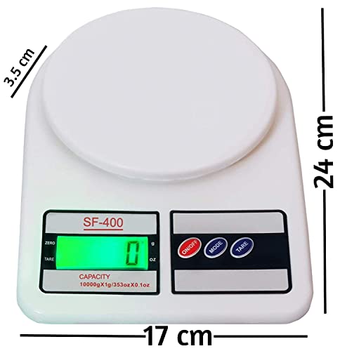 Healthy diet is an essential part of everyday life. Are you worried about how to choose a digital kitchen scale? introduce digital kitchen weight scale to resolve all your questions. Wide LCD screen display, easy to read. It ensures accurate weighing even in high humidity areas as its splash-proof design. The scale has multiple features like Tare function, Unit Exchange, Overload Indicator, etc. When the scale is overloaded, the scale will appear EEEE. Automatically lock the reading when data is stable. A quality built precision electronic digital kitchen scale with a large digital readout, perfect for measuring ingredients up to 10 kilograms. Switchable to Imperial measures (oz) so you can easily refer to any cookbook! The Tare function lets you measure different ingredients into the same container, a press of a button will set the scales to 0 at any weight. You can even set to zero and subtract weight as it shows you how much weight you have removed ! With measurement graduations of 1 gram, this scale provides all the accuracy that is required in the kitchen. Dimensions: (9.65x 6.7 x1.38)in/ (24.5 x 17 x 3.5)cm (L x W x H)