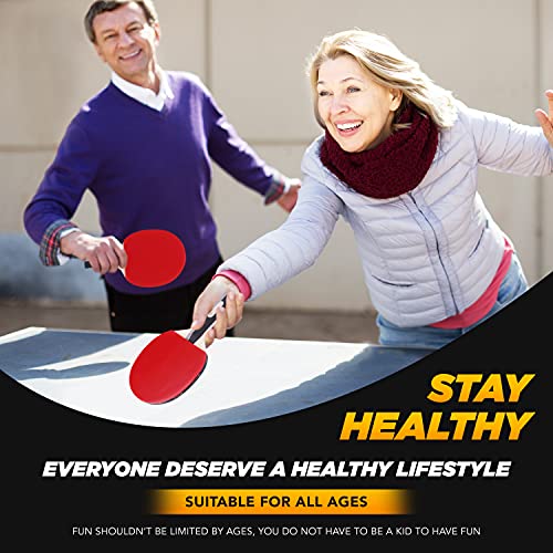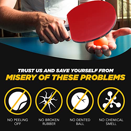 🏓 PRACTICE YOUR SHOTS WITH CONFIDENCE: Made of extra-durable poplar wood, our ping pong paddles are covered with durable rubber that will resist heavy daily use without peeling off, like similar ping pong rackets.