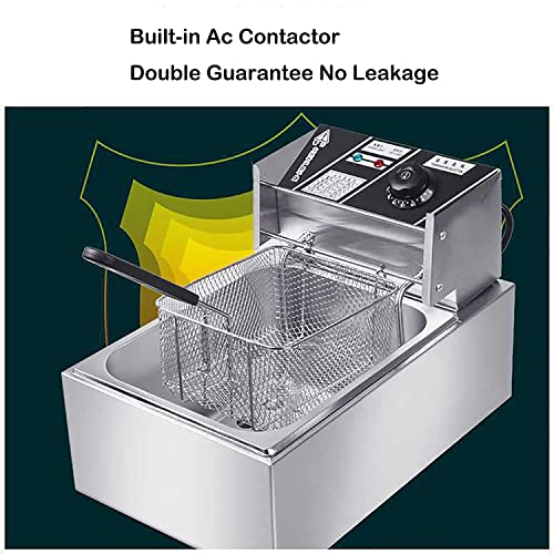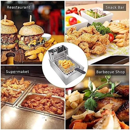 Arcanine Electric Commercial Deep Fryer with Basket, 2500W 6L Stainless Steel Fryer Desktop with Temperature for Commercial Home Restaurant
