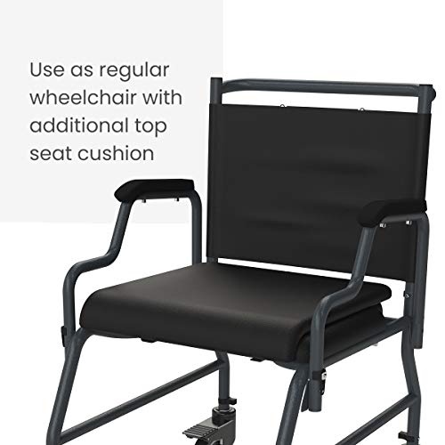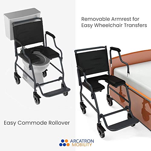 EASY TOILET VISITS: Removable armrests enables easy transfer from bed. Can be easily pushed to toilet and rolls over commode. No need to lift and carry the user.