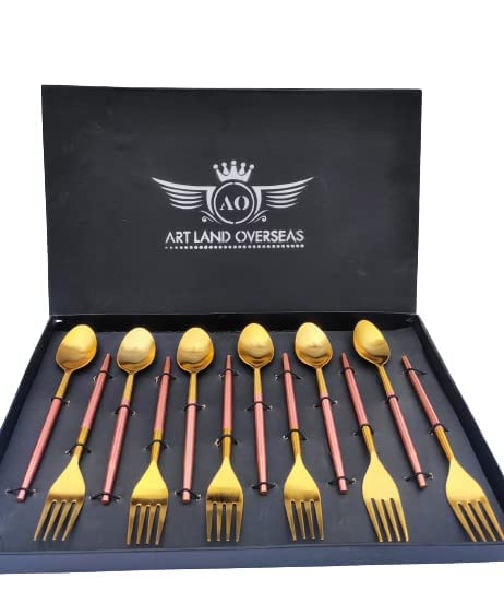 ART LAND OVERSEAS presents stainless steel gold plated spoon and fork set Cutlery set that makes meals an elegant affair with well-designed, food-grade stainless steel cutlery. Add a bit of structure to the dining table with a handy, well-planned cutlery set. These pieces have thick stems for solidness, and delicate bent edges for wellbeing, style, and usefulness. Our serving spoon set absolutely unique patterns combined with the proper weight and thickness of this cutlery set for the dining table provide maximum comfort for a pleasurable, elegant dining experience.