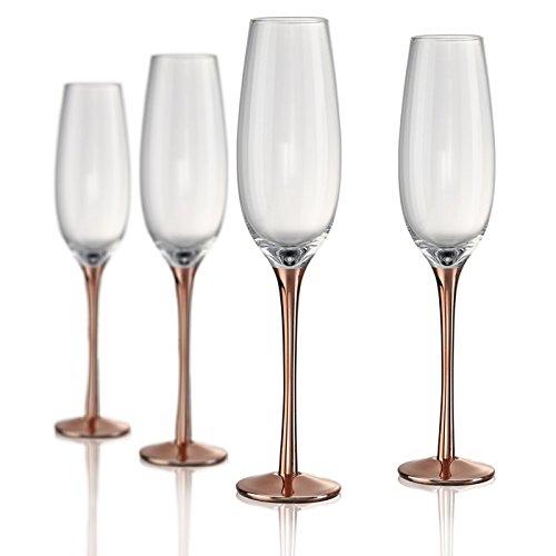 Artland 52012B Coppertino Flute Glass, Set of 4, 8 oz, Clear/Copper