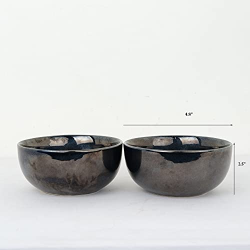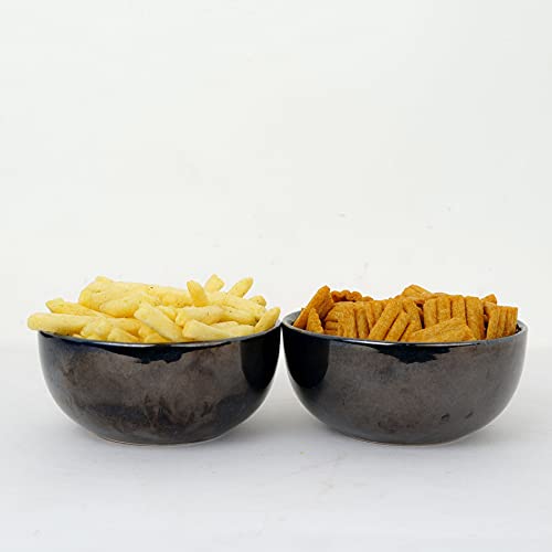 Artysta Hand-Glazed Ceramic Serving Soup/Snacks Bowls for Dining Serveware Mixing Bowls for Kitchen Microwave & Dishwasher Safe (Set of 2, Black Color, 350 ml)