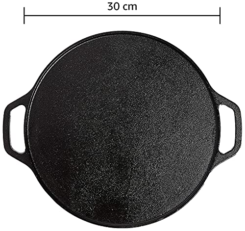 ARUNDRA Cast Iron Tawa Dosa Tawa 12 Inch Pre-Seasoned Cast Iron Skillet / Stove Suitable, ( Black )