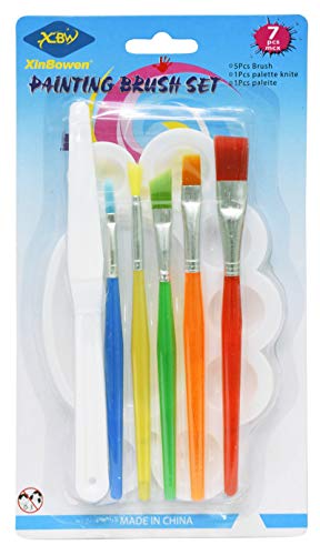 7 Pcs Paint Brush Set – Contains 5 Pcs Brush + 1 Pc Palette Knife + 1 Pc Palette.