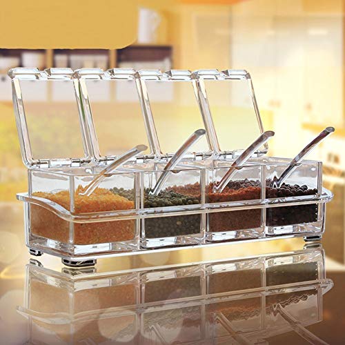 ATMASAD Crystal Spice Rack Seasoning Acrylic Box Pepper Salt Spice Rack Plastic 4 Box with Spoons Kitchen See Through Storage Containers Cooking Tools.