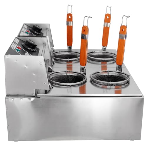 AVI Pasta Cooker Electric Noodle boiler and Electric Fryer 4-hole Noodle stove Stainless steel Commercial Cooking noodle machine 2500W*2 6L*2