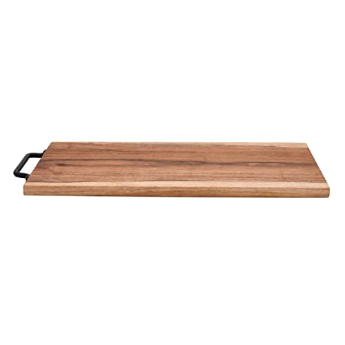 This acacia cutting board comes with an ergonomic metal handle that makes it easy to hold the board while you’re putting the chopped ingredients in the cooking pot. This ensures that your countertops remain clean and uncluttered.