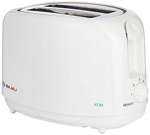 Bajaj ATX 4 750-Watt Pop-up Toaster (White)If you need to prepare fast and delicious sandwich in the kitchen, the Bajaj ATX4 Sandwich Pop Up Toaster is just what you need. This amazing sandwich maker is a 2 slice maker allowing you to prepare homemade sandwiches fast and easy. It allows you to quickly prepare your sandwiches while the non-stick plates ensure no residues as well as easy maintenance. This kitchen buddy has a locking clip and cool touch body for added operational convenience. The reheat function comes in very handy to quickly heat already prepared sandwiches.Bajaj Majesty KTX 9 1-Litre Multifunction Stainless Steel KettleMultifunction Cordless Kettle.