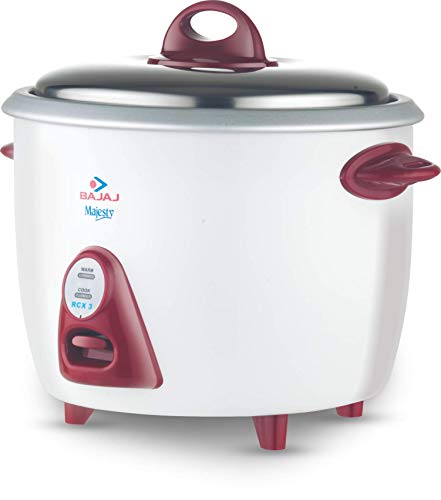 Bajaj Majesty New RCX 3 Multifunction Rice Cooker with Keep Warm Function, 1.5L, 350W, White and Pink