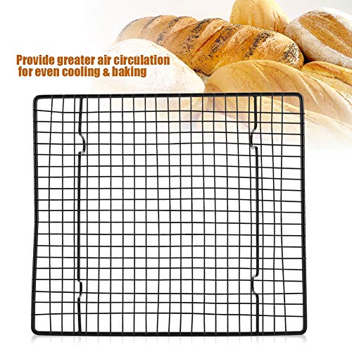 Features:✅【PERFECT SIZE】Measuring 10 x 9 in, the nice large size of grilling rack is suitable for multi people barbecue while have party in villas, lawns, rooftops and other places.✅【COOLING RACK】Grid net design and exquisite workmanship, baking rack grid size and 4 raised feet were specifically designed to allow optimal air circulation for cooling cakes, cookies and bread. ✅【 GRILLING & BAKING RACK】You can using the stainless steel wire oven rack for making crispy chicken in the oven, grilling or baking ribs, meat, making baked potatoes and other fried food.✅【STURDY STAINLESS STEEL 】Non stick cooling rack is made of ultra thick 304 stainless steel which is designed for extreme durability and rust/warping resistance, will not chip or scratch, no metal plating or coating.✅【MONEY BACK GUARANTEE 】If you experience a manufacturing defect in materials, or feel unhappy with the use of the cooling rack , contact us any time, we will refund you or replace it at no charge.Specification:Material: Stainless steelColor: BlackSize: 26 x 23 x 2.5cm / 10.24 x 9.06 x 0.98 inch (appr.)Package List:1 x Baking Rack