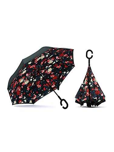 Basket* Windproof Upside Down Printed Reverse Umbrella with C-Shaped Handle