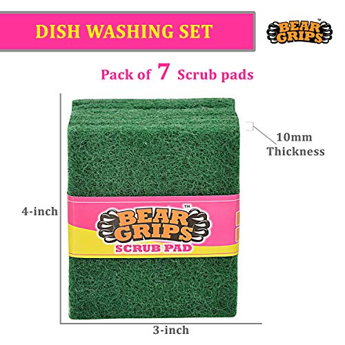 7 units of Bear Grips Scrub Pad with 10mm thickness and ergonomic 4-inch X 3-inch size for tough stain removal.