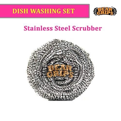 3 units of Bear Grips Multipurpose Nylon scrub and 1 units of brush can be used for sink cleaning, mirror/ glass scrubbing, dishwashing, glassware cleaning, etc. 1 Unit of Bear Grips 12 grms Stainless steel scrub can be used for tough and hard stains.