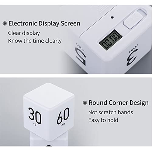 Belity Portable Cube Timer Digital Kitchen Timer Countdown Alarm 1-3-5-10 Minutes Flip Timing with Digital Display Time Management for Study Sports Cooking Gaming Office
