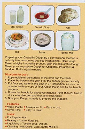 Color May Vary,Package contents: 1 Mixture, 1 atta maker, 3 measuring cups (Flour, water, oil), 1 handle