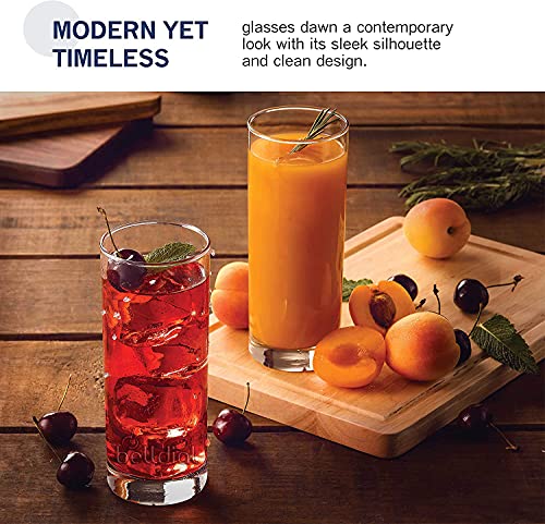 Modern yet timeless, these highball glasses dawn a contemporary look that is perfect for entertaining and everyday use. With their sleek silhouette and clean design, this tumbler glass set is versatile enough for casual and formal use.
