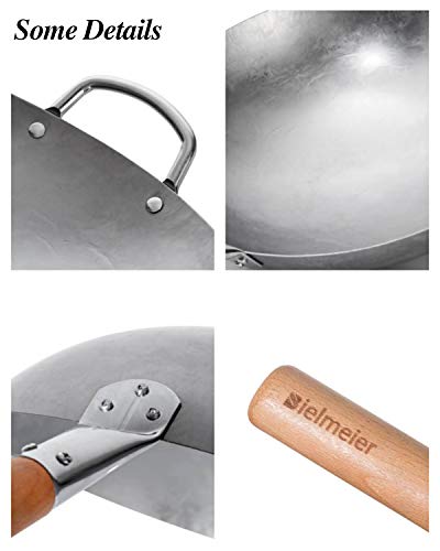 Welcome to join Bielmeier. Bielmeier is committed to providing you with cost-effective products for the kitchen and home. This product is equipped with a wok ring, We hope you like it. We also want to share some notes with you : 1. It‘s not a non-stick pan, it will become more and more non-stick through your seasoning. instructions for easy seasoning are included with the wok You can find seasoned videos through YouTube. 2. After cooking, please move the food to other containers, because the salt and acid components in the food will penetrate the iron surface, which may affect the special treatment effect of the surface. 3.It is not allowed to stew Chinese medicine and mung beans in an iron pan. It is not advisable to cook acid foods such as bayberry, hawthorn, begonia, apple. 4. It needs to be cleaned in time, but the dishwasher cannot be used. Keep it dry after cleaning. Thanks again for your attention!
