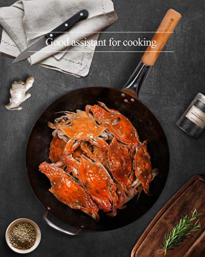 Professional chefs choose :This wok made of high-quality materials (1.8MM carbon steel), transfers heat more efficiently, searing foods more effectively than woks of other materials, and retains heat longer.