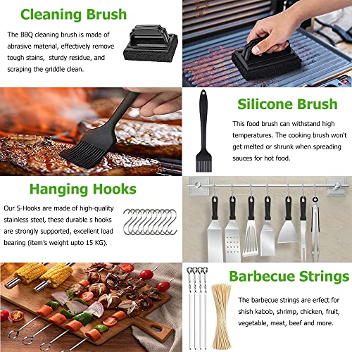 【Premium Grade Stainless Steel】Made of durable thicker stainless steel, The griddle utensils set features glossy finish and rust resistant for long-lasting durability, the BBQ set heat resistant and non slip abs handles provides a comfortable grip, with hanging holes for easy storing. The grill accessories set is dishwasher safe and quick clean.
