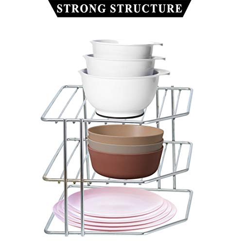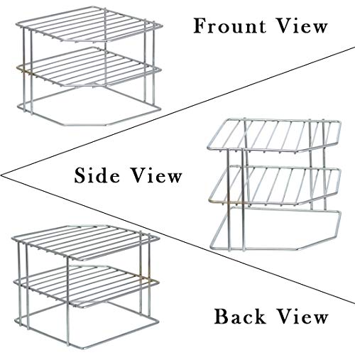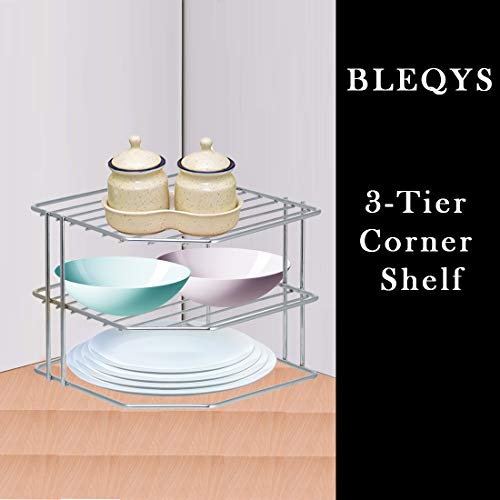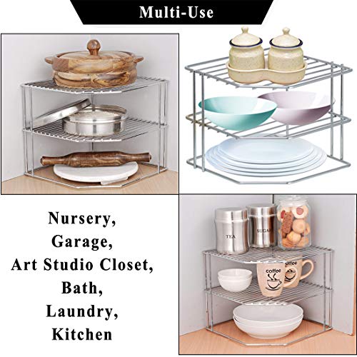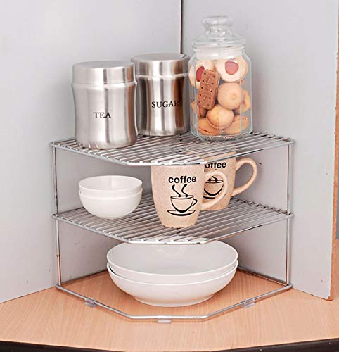 BLEQYS® 2 -Tier Stainless Steel Kitchen Plate Dish Corner Shelf Rack Stand Shelves Holder, Kitchen Tray Pan Pot Utensils Storage Cupboard Cabinet Organizer for Home Bathroom Living