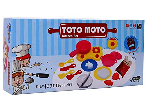 blossom kitchen set toy for kids pretend play for girls with frenchfries, spoon, fork, knife, pan, plates, vegetables, chapati roller & stick / modern indoor outdoor playing (toto moto)- Multi color