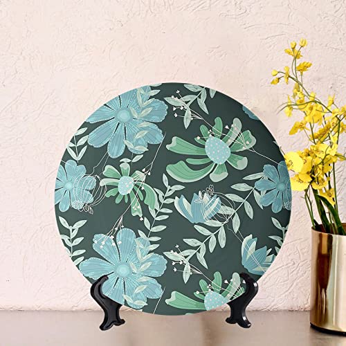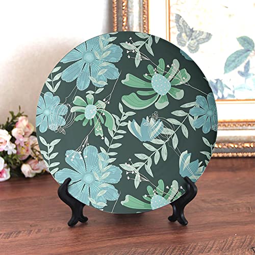 Blue Green Floral Decorative Plate Ceramic Plate Art Decoration Seamless Design for Salad,Party Kitchen,Dining Table,Home Decor Porcelain Plates – 10 inches