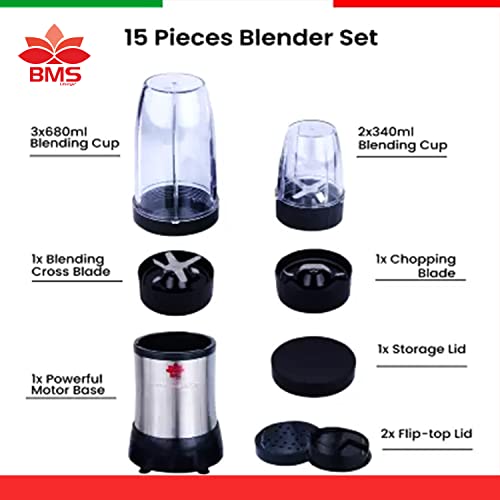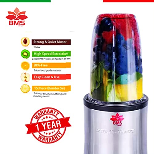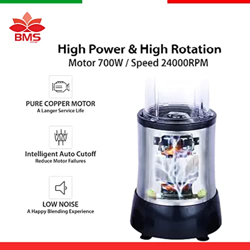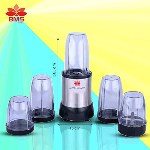 BMS Lifestyle Nutri Blast 22000 RPM 400-Watt | Kitchen Blender Machine Mixer Grinder | Blender Juicer | Stainless Steel Blades | 5 Unbreakable Jars