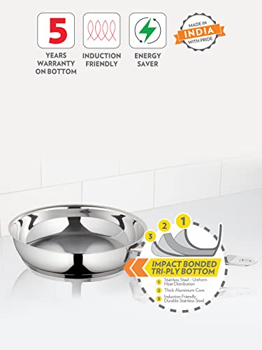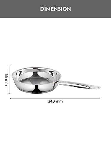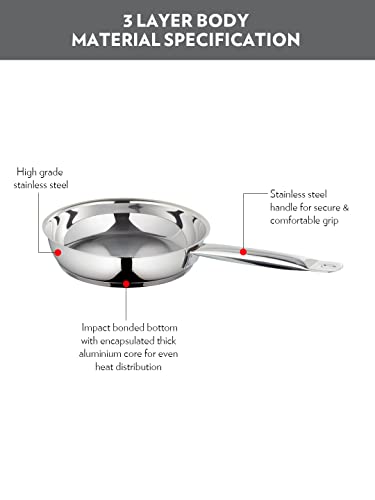 Borosil – CFFP24SS12 Stainless Steel Fry Pan, Impact Bonded Tri-Ply Bottom, Silver