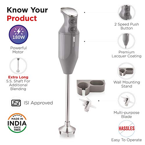 BOSS Platinum Hand Blender with Long Shaft and Laquer Finish, 180 Watt, 3-Blades, Grey