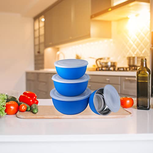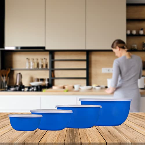 BOWLMAN Stainless Steel Microwave Safe Euro Bowl Set with Lid for Food Serving and Storage Containers for Your Modern Kitchen (Blue, Pack of 4 Pcs)