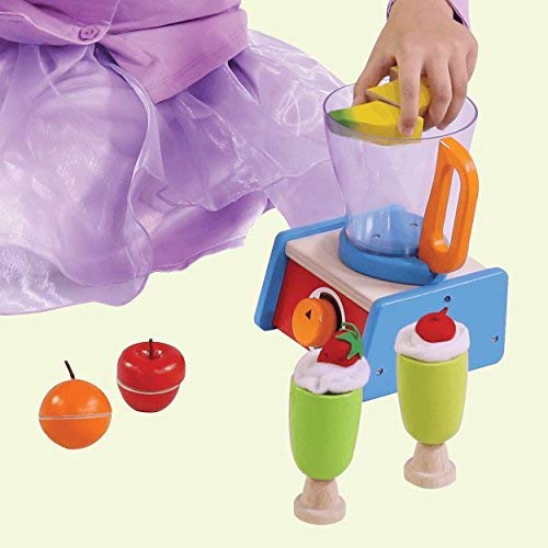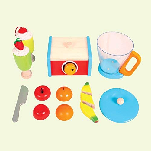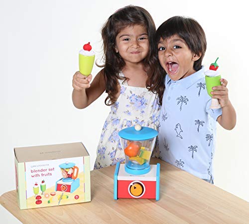 Brainsmith Blender Set with Sliceable Fruits, Non Toxic Wooden Mixer Toy – Realistic Educational Kitchen Role Play Toys for Girls and Boys (2-7 Years)