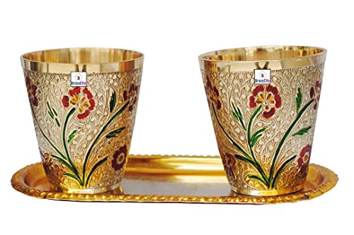 This exquisite handmade glass set has been crafted by skilled artisans from India. This product is equally valuable even after damage as this brass metal is easily recyclable